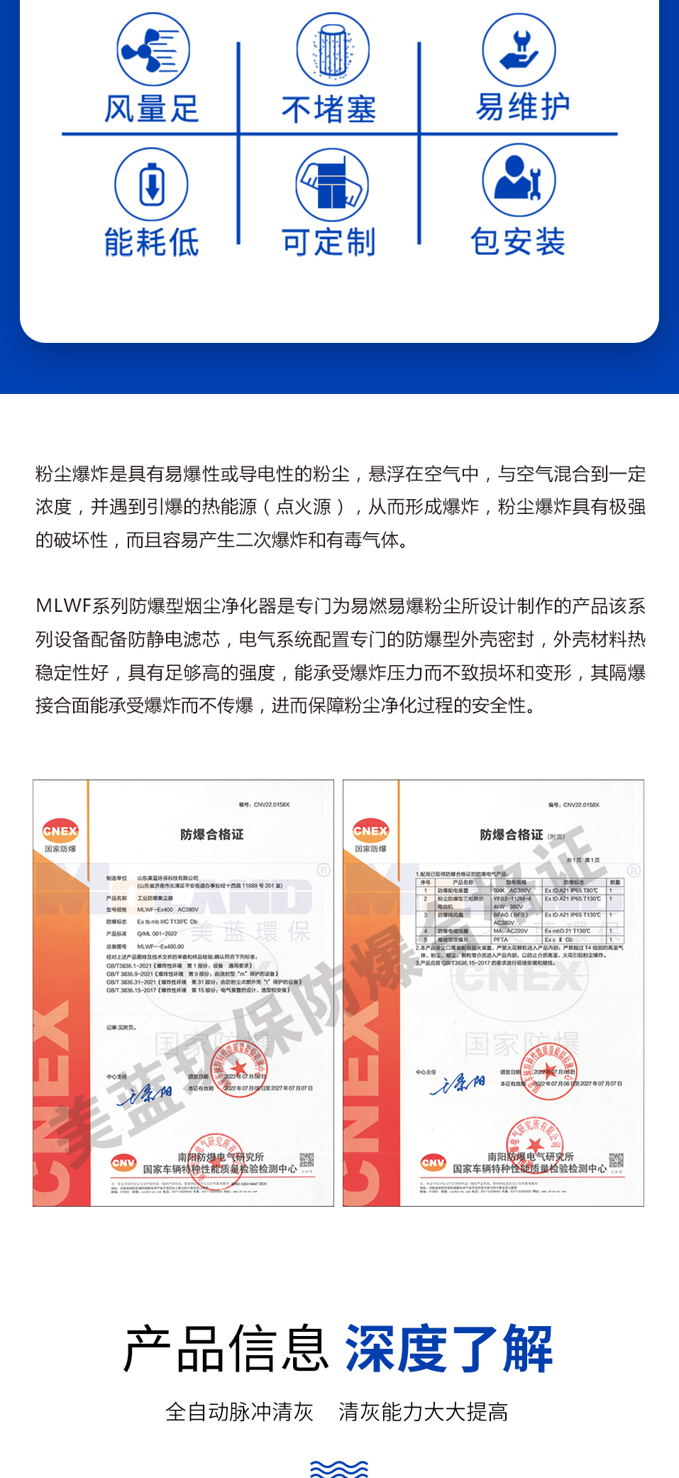• 接從源頭提取粉塵,以確保粉塵不會(huì )逸散到工作場(chǎng)所。加裝防爆裝置,以確保員工的安全,并最大限度地減少工廠(chǎng)和設備的損壞。防護所謂的袋進(jìn)/袋出(BIBO)技術(shù)用于在更換過(guò)濾器時(shí)防止操作員暴露和收集的材料泄漏。卸料系統采用連續襯套技術(shù),在系統的自動(dòng)脈沖清潔過(guò)程中,將濾筒釋放到料斗的灰塵控制住。